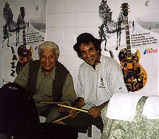 | El Negro & Tito Puente backstage, swappin' licks |